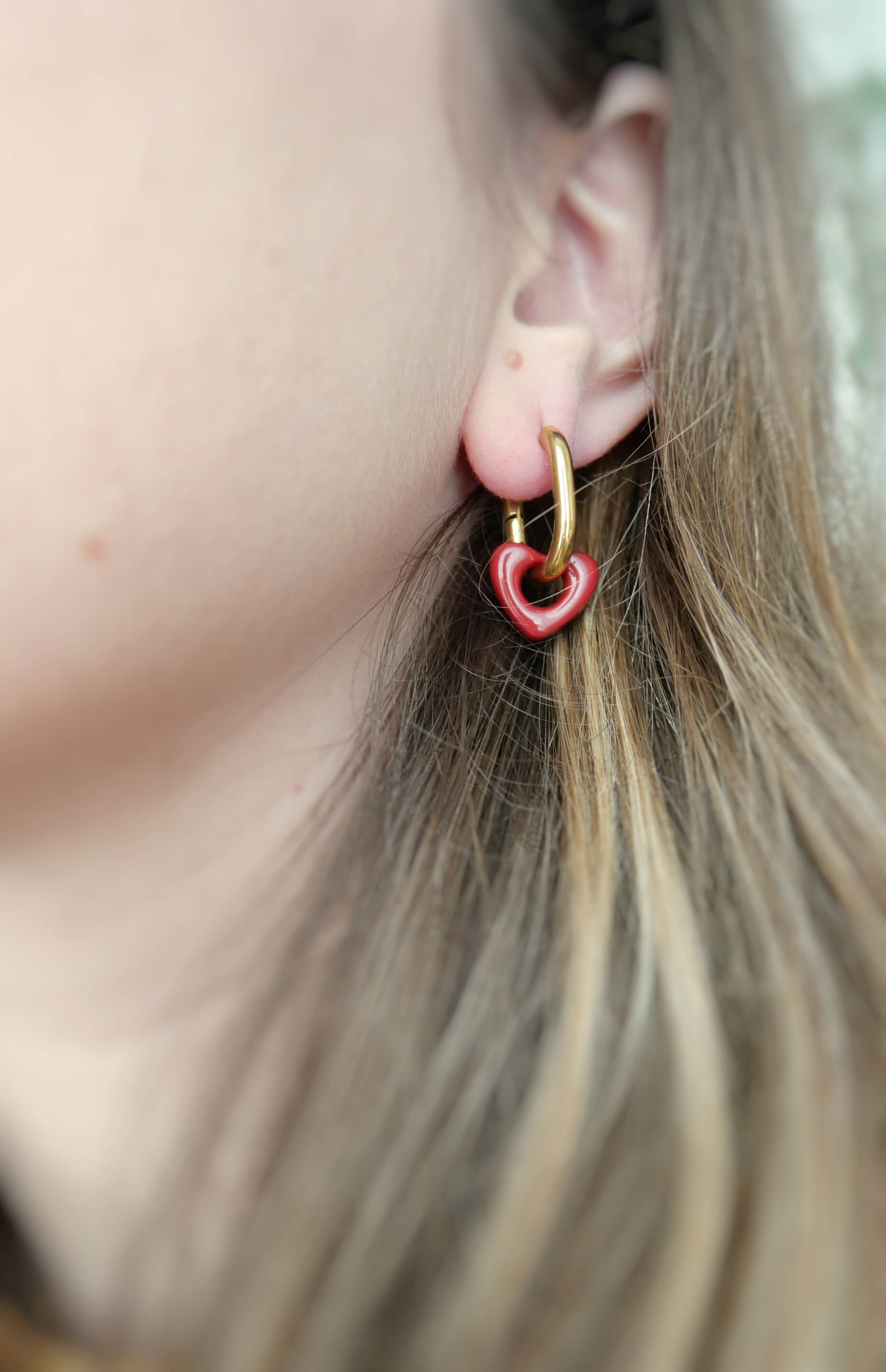 Symbole d’amour et de caractère, les boucles Amor mêlent la douceur d’un cœur rouge profond à l’éclat doré d’une base ovale en acier inoxydable.