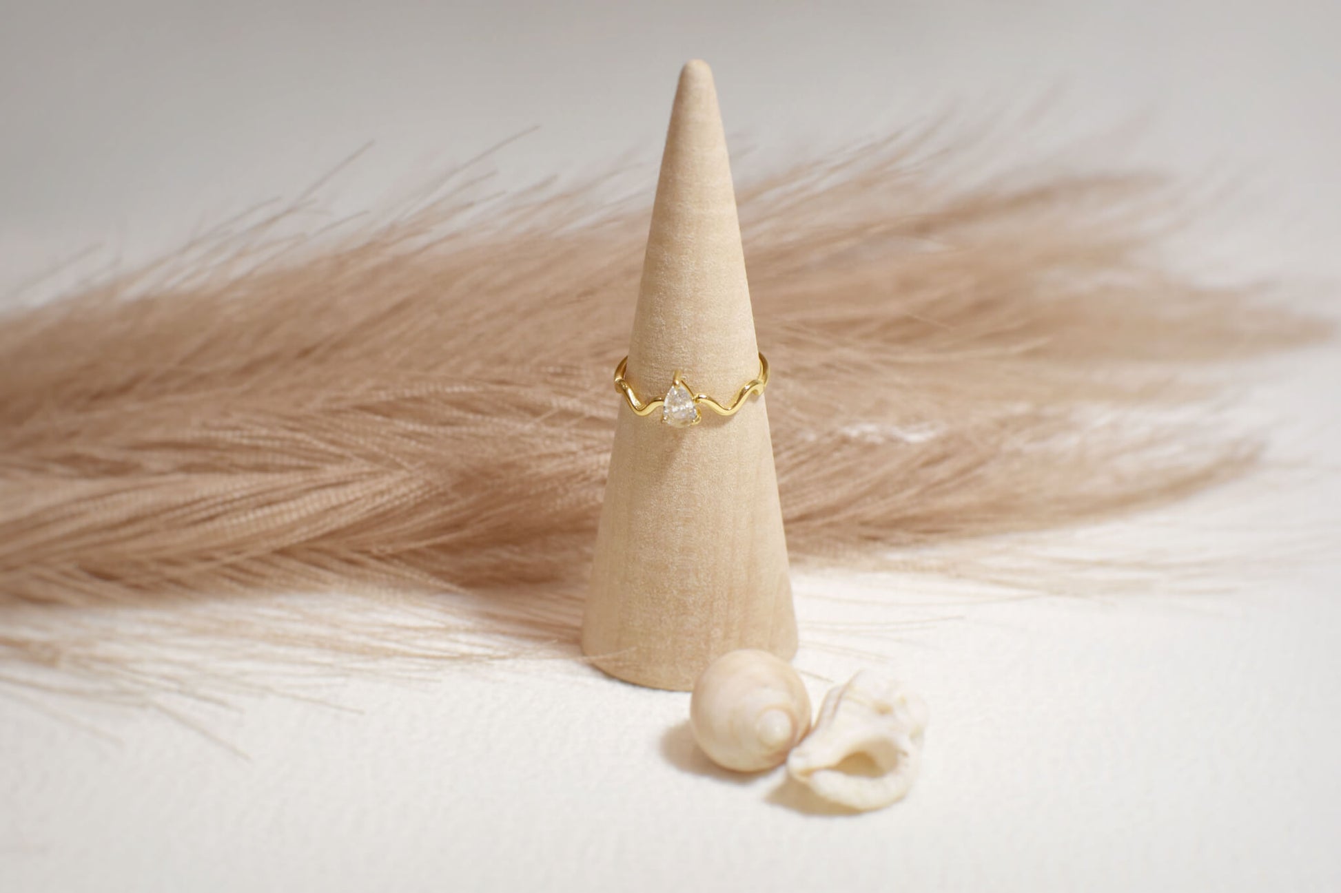 Ivy est une bague ajustable dorée, son design en spirale douce épouse élégamment le doigt, telle une feuille qui s’enroule avec grâce. Un bijou à la fois intemporel et symbolique, conçu pour sublimer les gestes du quotidien