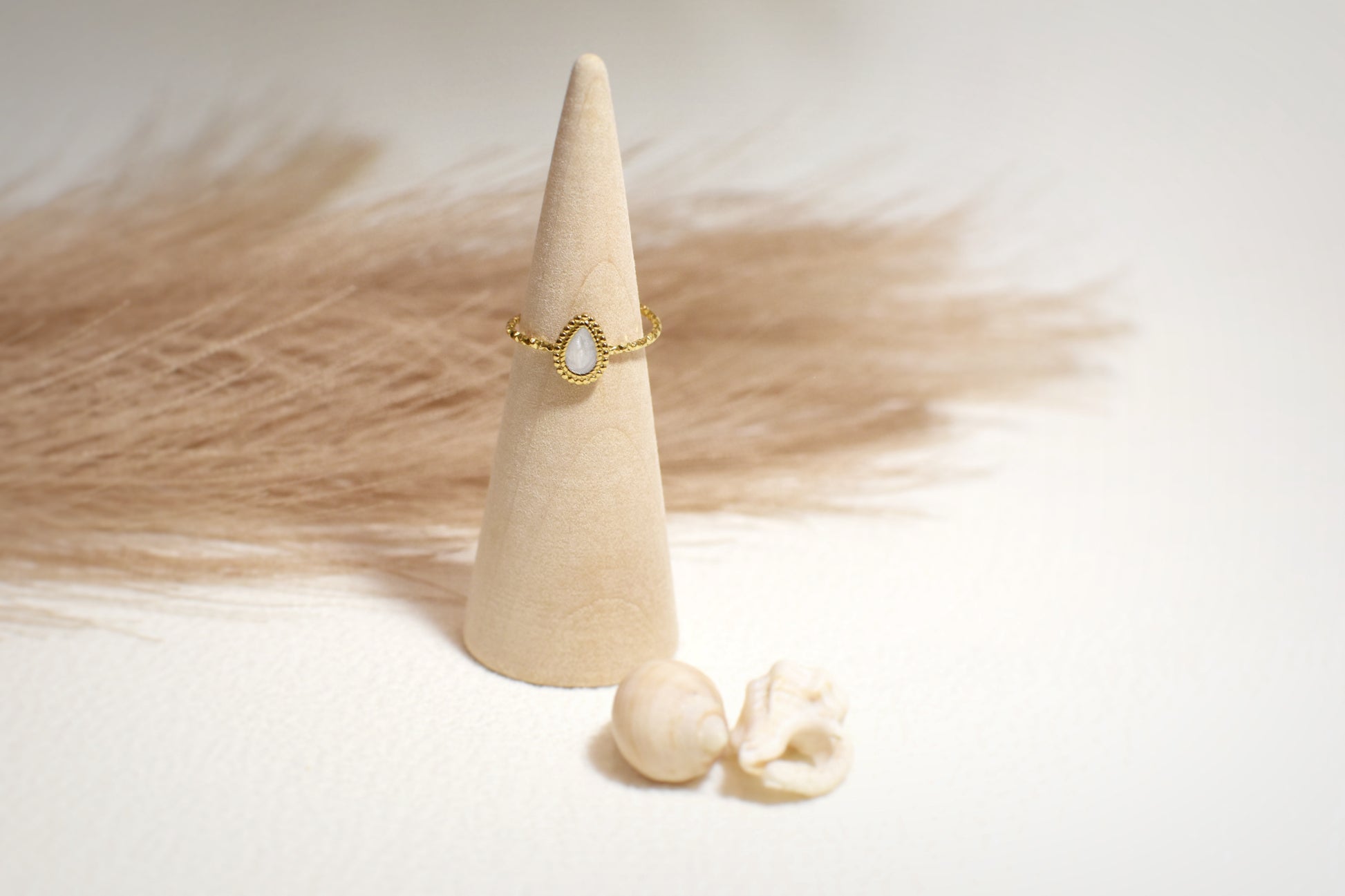 Lily est une bague ajustable délicate et vintage, inspirée des perles d'eau douce et du style à la française. Son anneau texturé et son motif en émail doux apportent une touche de raffinement discret. Un bijou intemporel pour sublimer vos tenues décontractées comme vos rendez-vous spéciaux.