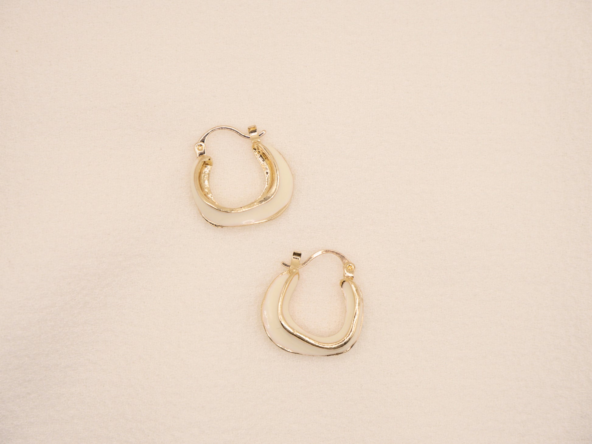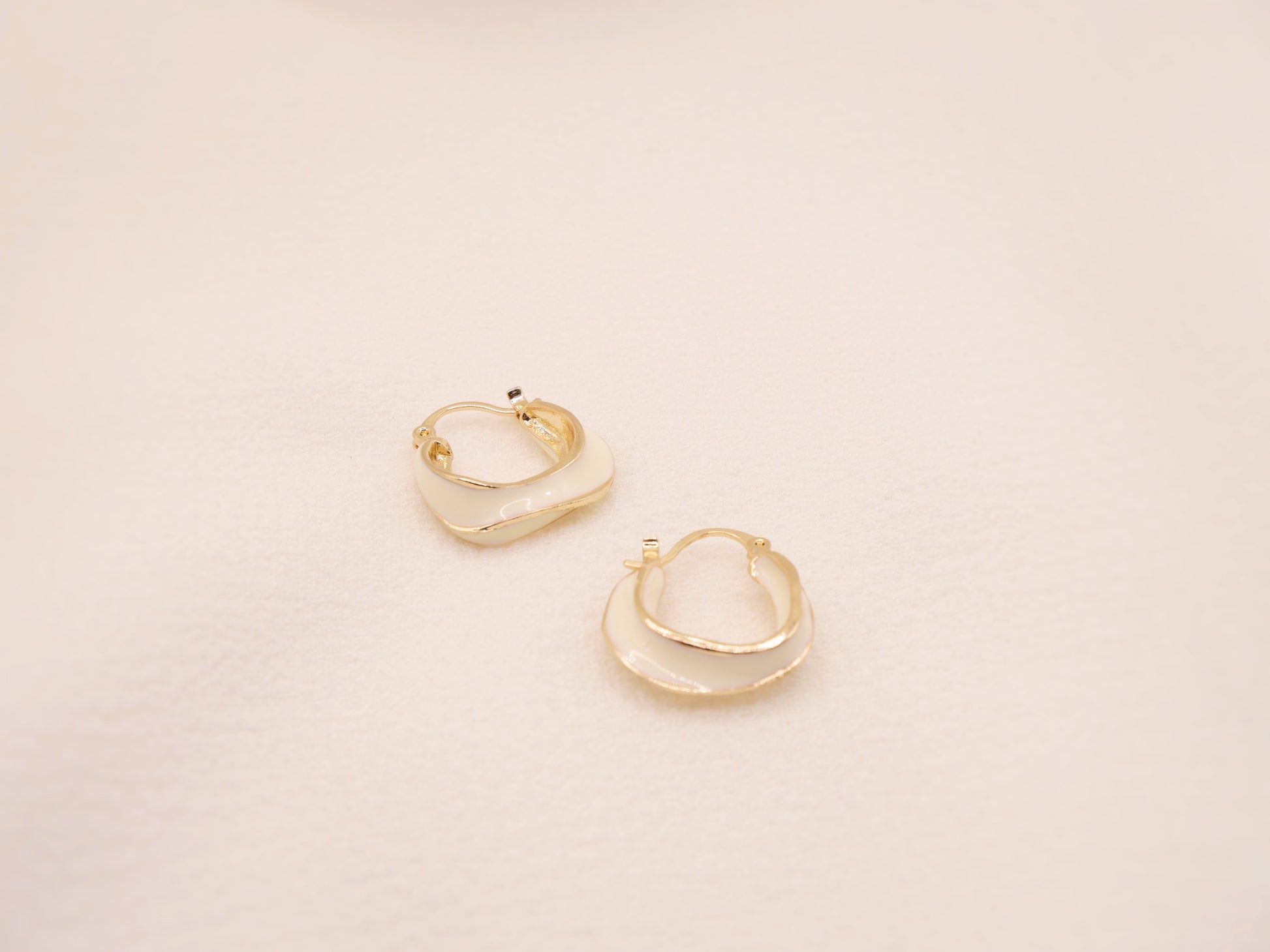 Leur forme légèrement ondulée apporte une touche organique et douce, sublimée par le contraste entre l’acier inoxydable doré et l’émail beige délicatement posé.
