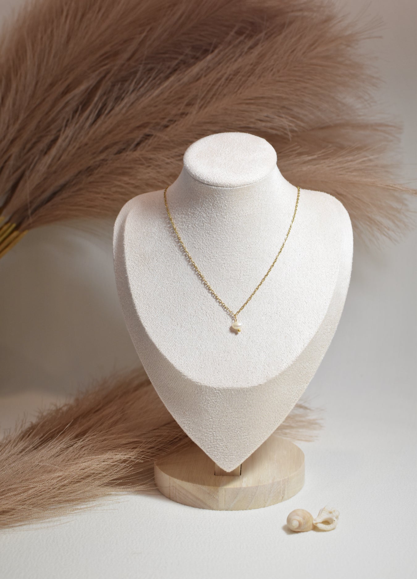 Simplicité et élégance s’unissent dans ce collier délicat composé d’une fine chaîne en acier inoxydable doré et d’une perle de culture unique. Un bijou intemporel, à porter seul ou en superposition, pour une touche subtile de raffinement au quotidien